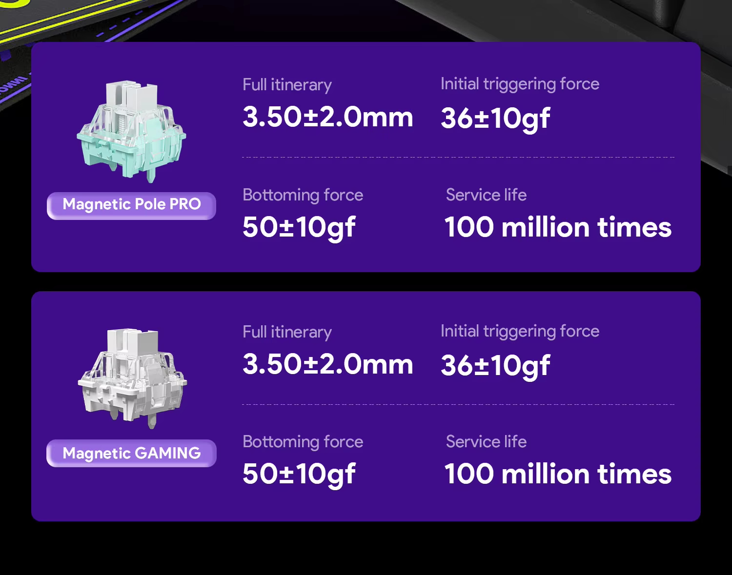 Eliminate the second slowest element in input latency; return key press travel before key deactivation. Rapid Trigger dynamically